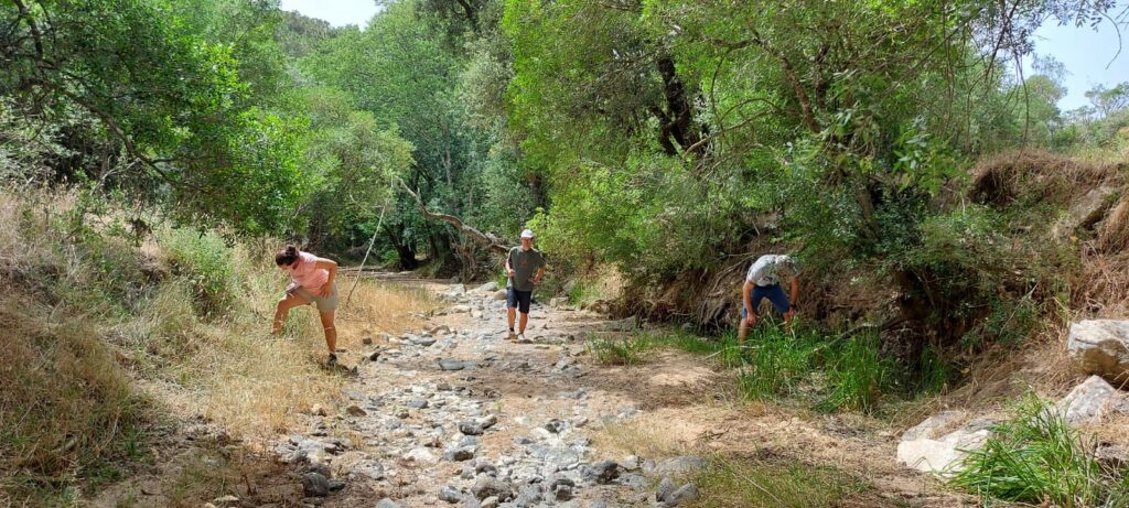 Imatge de membres de l’equip d’investigació treballant a la riera de Fuirosos (Parc del Montnegre i el Corredor), ecosistema fluvial on s’ha fet l’estudi. Font: Alba Camacho Santamans